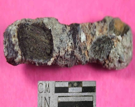 | Description / विवरण | Entirely incrusted nail with broken top and pointed bottom. |