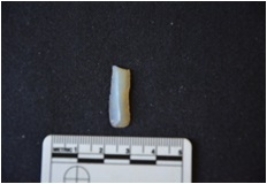 | Description / विवरण | Blade made on chalcedony, use wear marks on both edges, mid ridge on dorsal side. Broken at the distal end |