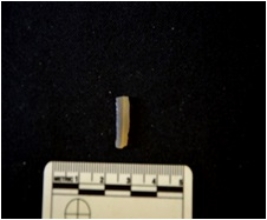 | Description / विवरण | Blade made on chalcedony, use wear marks along both edges, mir-rdige on dorsal side |