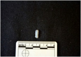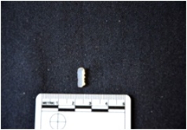 | Description / विवरण | Blade made on chalcedony, use wear marks along both edges, bulb of percussion visible |