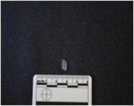 | Description / विवरण | Fragment of a blade made on chalcedony, use wear marks along both edges, broken at both ends |