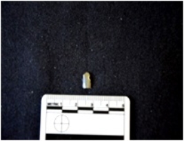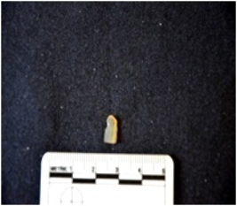 | Description / विवरण | Fragment of a blade made on chalcedony, use wear marks along both eges, retouch marks along one edge, broken at the proximal end |