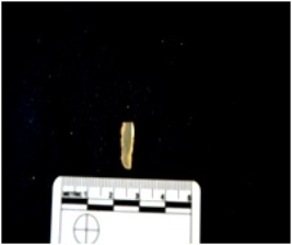 | Description / विवरण | Backed backed made on chalcedony, use wear marks along one edge |