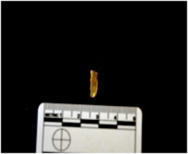 | Description / विवरण | Blade made on chalcedony, use wear marks along one edge |