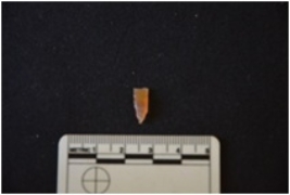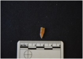 | Description / विवरण | Fragment of a blade made on chalcedony, use wear marks on both edges, broken at both ends |