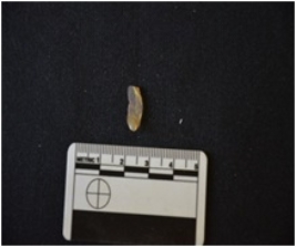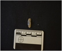 | Description / विवरण | Blade made on chalcedony, use wear marks along both edges, bulb of perucssion visible |
