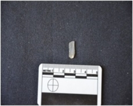 | Description / विवरण | Blade made on chalcedony, use wear marks along both edges, broken along the distal end |