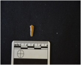| Description / विवरण | Blade made on chert, use wear marks along both ends |