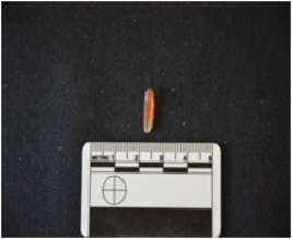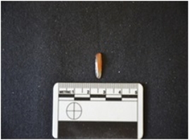 | Description / विवरण | Blade made on chalcedony, use wear marks along both edges, retouch marks along one edge |