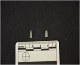 | Description / विवरण | Fragment of a blade made on chalcedony, use wear marks seen, broken at both ends |