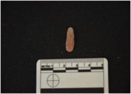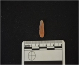 | Description / विवरण | blade made on chalcedony, use wear marks along both edges, bulb of percussion visible |