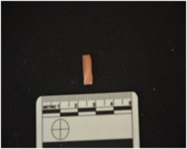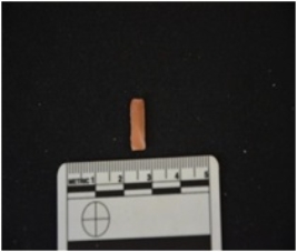 | Description / विवरण | Blade made on chert, use wear marks along one edge, broken at both ends |