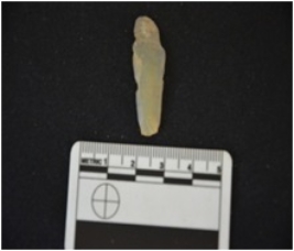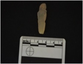 | Description / विवरण | Blade made on chalcedony, broken at the proximal end, use wear marks along both edges |