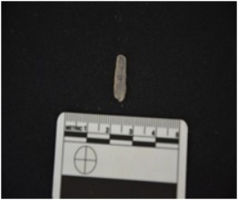 | Description / विवरण | Blade made on chalceony, use wear marks along both edges, bulb of percussion visible |