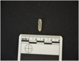 | Description / विवरण | Blade made on chalcedony, use wear marks along both edges, bulb of percussion visible |