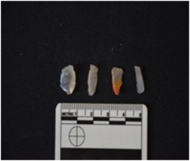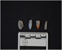 | Description / विवरण | Blade made on chalcedony, use wear marks along both edges, bulb of percussion visible |