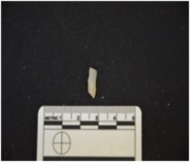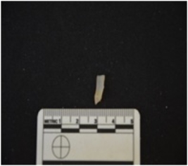| Description / विवरण | Blade made on chalcedony, use wear marks along both edges, broken at the proximal end |