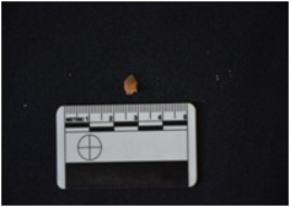 | Description / विवरण | Chalcedony blade fragment has flake scars on dorsal side, broken from proximal end use-wear marks on cutting edges and raw-material given heat treatment. |