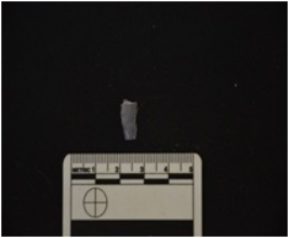 | Description / विवरण | Chalcedony blade fragment has a ridge on dorsal side, broken from both ends, use-wear marks on cutting edges and triangular cross-section. |