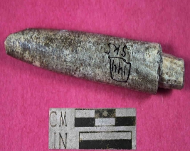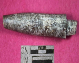 | Description / विवरण | A conical shaped arrow head ,pointed from one end and slightly broken from other end. Its color is light brown and has smooth surface. |