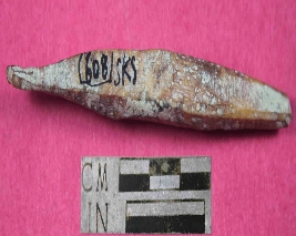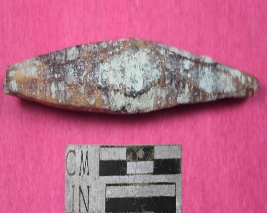 | Description / विवरण | An irregular conical shaped point, pointed from one end and broken from othher end. It is yellow in colour and has smooth surface. |