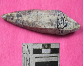 | Description / विवरण | A conical shaped bone point,pointed from both the ends. Its color is light brown and has smooth surface. |