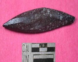 | Description / विवरण | A spindal shaped point. It is pointed from one end and broken from the other end. Its colour is light brown and has smooth surface. |
