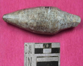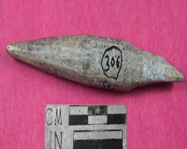 | Description / विवरण | A spindle shaped point having one blunt end and one broken end. Its colour is grey and has smooth surface. |