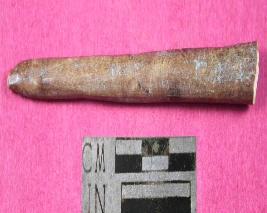 | Description / विवरण | A conical shaped bone point with blunt ends. It is light brown in colour and has smooth surface. |
