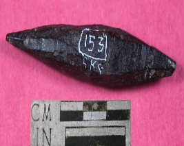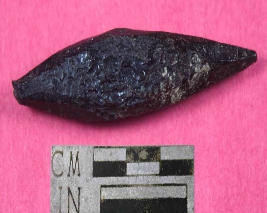 | Description / विवरण | A conical shaped bone point ,pointed from both ends. Its color is black and has rough surface. |
