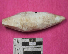| Description / विवरण | A cylindrical shaped bone point showing pointed on one end and upper part slightly broken.Its color is light brown and fine surface. |