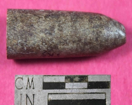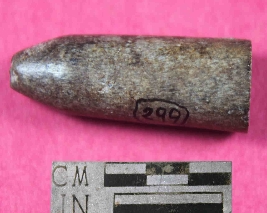 | Description / विवरण | A bullet like shaped bone point showing pointed on one end and blunt from other side.Its color is light brown and has fine surface. |