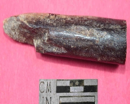 | Description / विवरण | A conical shaped bone point ,broken from one end and blunt from other side. Its color is dark brown and has smooth surface. |