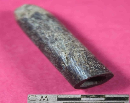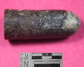 | Description / विवरण | An unidentified cylinderical shaped object . It has hole from one side and one curved closed end. It is black in colour and has smooth surface. |