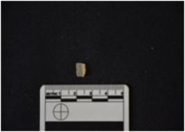 | Description / विवरण | Chalcedony blade fragment has two ridges on dorsal side, broken from both ends, trapezoidal cross-section and use-wear marks on cutting edges. |