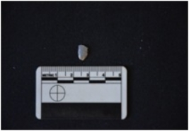| Description / विवरण | Chalcedony blade fragment has a ridge on dorsal side, striking platform bulb on ventral side, use-wear marks on cutting edges and broken from distal end. |