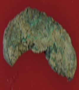 | Description / विवरण | Trench YB 3, layer 1, depth 10 cm It s a small piece of copper. It is curved copper piece. Surface is rough and deposition of hard patina. |