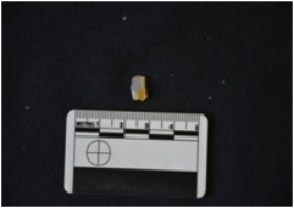 | Description / विवरण | Chalcedony blade fragment has a ridge on dorsal side, striking platform bulb on ventral side, use-wear marks on cutting edges and raw-material given heat treatment. |