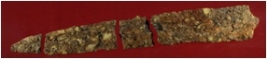| Description / विवरण | Trench XF 5, Qdt 4, layer 2, depth 200 cm It is a broken spear head made of iron. Badly rusted. Colour is rusty brown. Its broken into four pieces. |