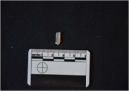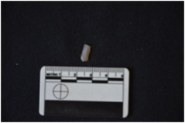 | Description / विवरण | Chalcedony blade fragment has a midridge on dorsal side, striking platform, bulb on ventral side, broken from distal end, use-wear marks on cutting edges and triangular cross-section. |
