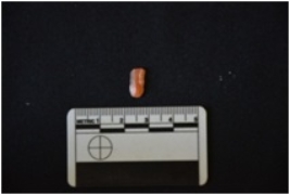 | Description / विवरण | Chalcedony heated blade fragment has two ridges on dorsal side, striking platform, bulb on ventral side, broken from distal end, trapezoidal cross-section and use-wear marks on cutting edges. |