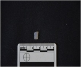 | Description / विवरण | Chalcedony blade fragment has two ridges and dorsal side, broken from both ends, trapezoidal cross-section and use-wear marks on cutting edges. |