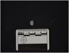 | Description / विवरण | Chalcedony blade fragment has two ridges on dorsal side, broken from both ends, trapezoidal cross-section and use-wear marks on cutting edges. |