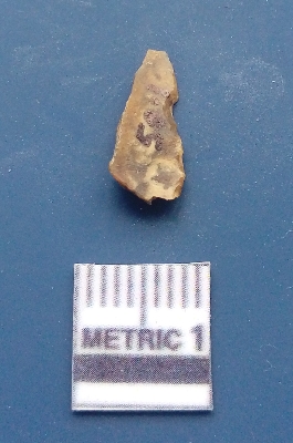 | Description / विवरण | It is a chert blade fragment. The ridges and the flake scars are clearly seen on the dorsal surface while the ventral surface is plain. The lateral sides are sharp and it is brownish in colour. |