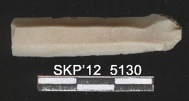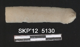 | Description / विवरण | Chert blade with a broken end with trapezium cross section and the other end has the bulb of percussion and retouched edge flaked dorsal side and sharp margins. |
