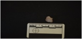 | Description / विवरण | Chalcedony blade fragment has flake scars on dorsal side, negative bulb on ventral side, striking platform and broken from distal end. |