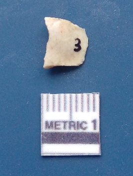 | Description / विवरण | It is a flake. The ridges and the flake scars are clearly seen on the dorsal surface while the ventral surface is plain. The lateral sides are sharp and it is creamish in colour. |