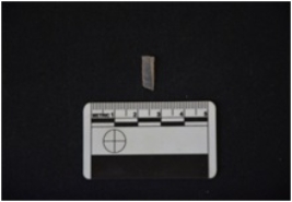 | Description / विवरण | Chalcedony blade fragment has two ridges on dorsal side, broken from both ends, retouches on cutting edges and trapezoidal cross-section. |
