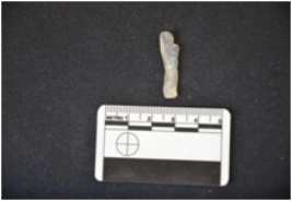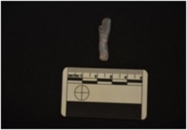| Description / विवरण | Chalcedony blade has a midridge on dorsal side, striking platform, bulb on ventral side, use-wear marks on cutting edges and triangular cross-section. |