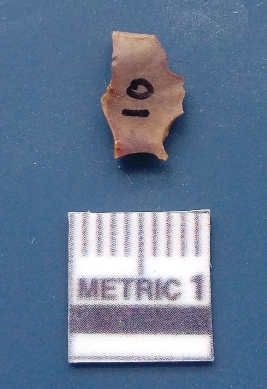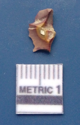 | Description / विवरण | It is a blade fragment. The ridges and flake scars are clearly seen on the dorsal surface while the ventral surface is plain. The lateral sides are sharp and it is brownish in colour. It is triangular in cross - section. The striking platform and the bulb of percussion is clearly seen. |